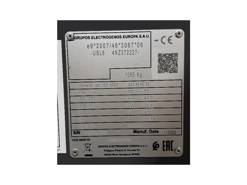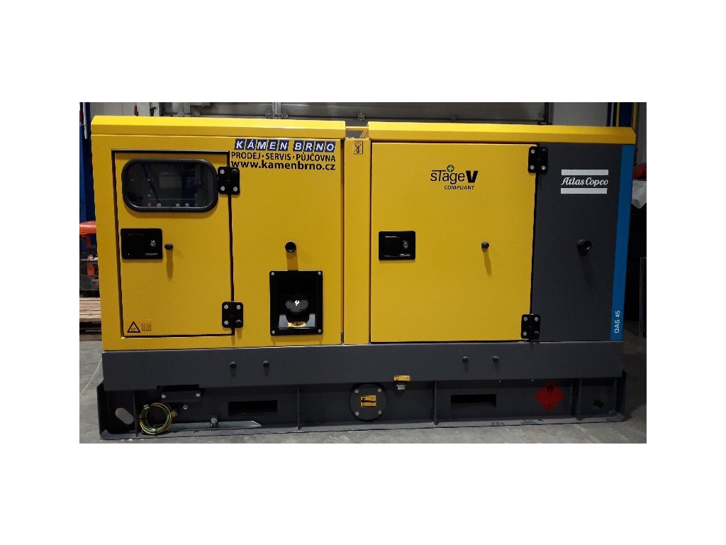 Generátor QAS 45 Atlas Copco, r.v. 2022, neprovozovaný (2 MTH), záruka 6 měsíců, byla provedena výměna filtrů a olejů