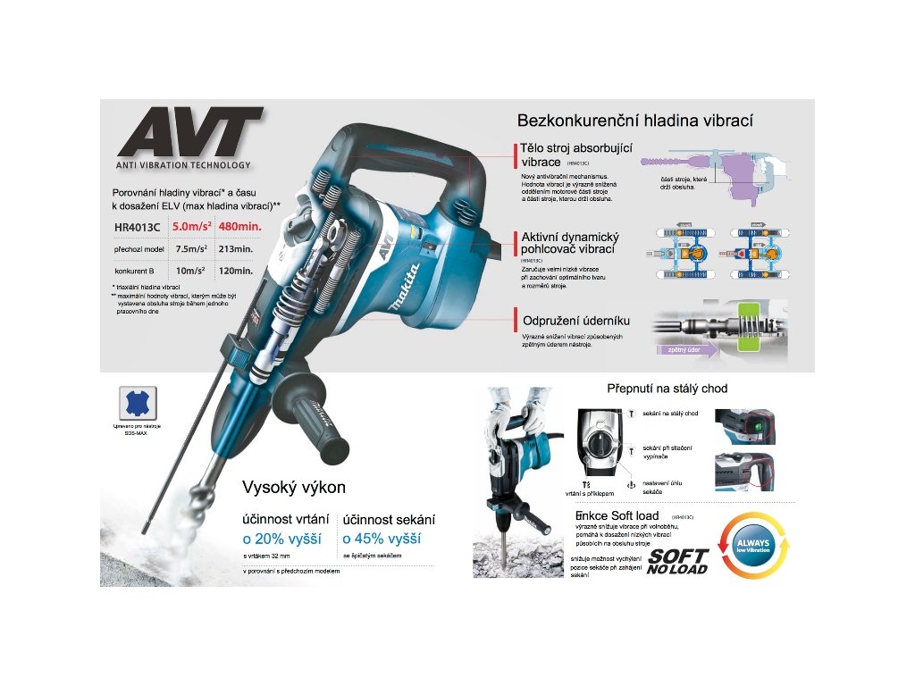 | Vibrace 3ax při sekání (ah): | 4,5 m/s2 |
