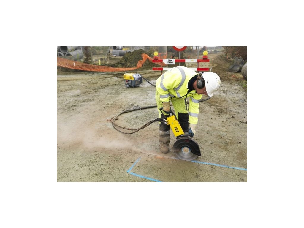 - Výkonná, lehká a kompaktní pila zajistí rychlé řezání betonu, asfaltu a oceli.