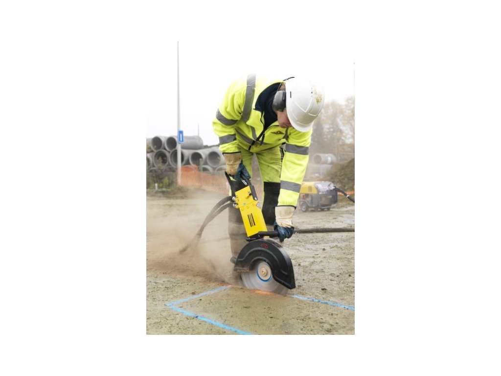 - Výkonná, lehká a kompaktní pila zajistí rychlé řezání betonu, asfaltu a oceli.