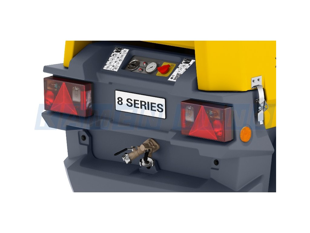 Kompaktní a lehká sestava kompresorů spadá u všech modelů navzdory začlenění palivové nádrže plné velikosti, dochlazovače a generátoru do kategorie pod 750 kg. Největší kompresor z této řady může produkovat 5 m³ vzduchu za minutu, a přesto lze táhnout za běžným osobním automobilem. Vzhledem k zahrnutí nového a modernizovaného krytu HardHat® jsou modely řady 8 dostatečně odolné pro použití v nejdrsnějších podmínkách.