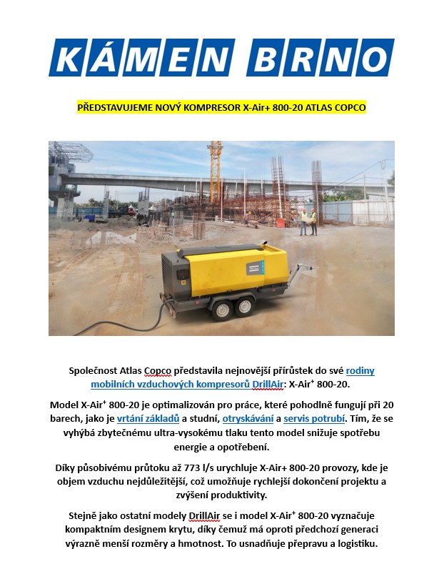 Nový kompresor X-Air+ 800-20 Atlas Copco