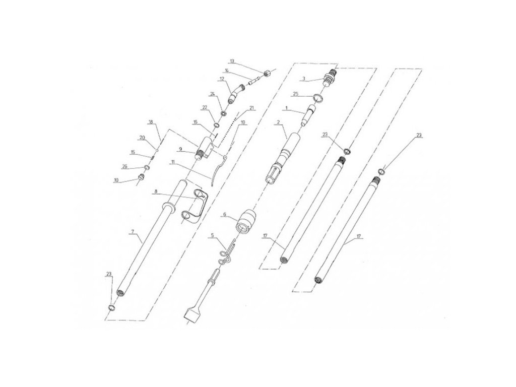 - Díky dvěma nástavným trubkám dosáhnete celkové délky škrabky 1 615 mm, tím prodlužujete dosah nástroje.
