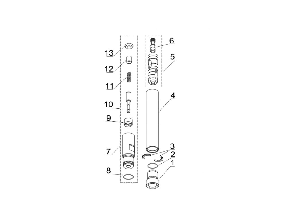 Jednoduchost vrtacího kladiva ( 8 základních dílů ) je zárukou snadné opravitelnosti bez nutnosti použití speciálního nářadí.