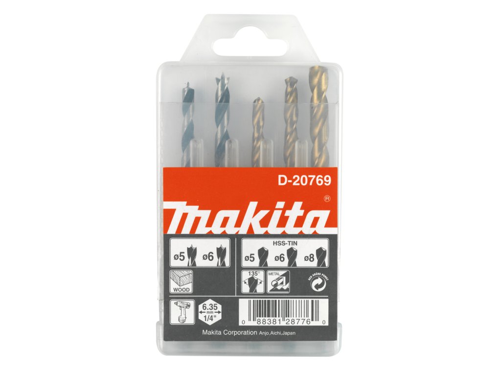 Sada vrtáků šestihran 1/4" do kovu/dřeva 5 ks v plastové krabičce Makita D-20769