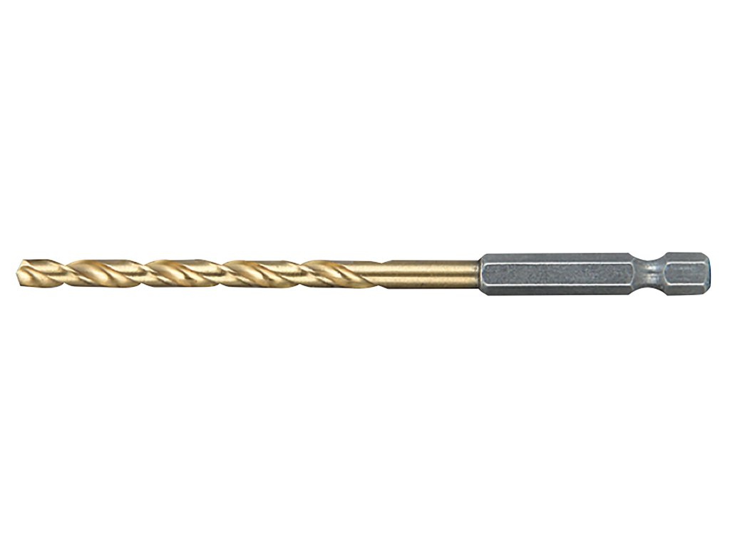 Vrták HSS-TIN dle DIN 338 s úhlem špičky 135°. S 1/4" šestihranným pohonem (DIN 3126). Vhodné pro vrtání v nelegované a legované oceli, mědi, bronzu a tvrdých plastech. Pro použití rovněž v rázových utahovácích s příslušným uchycením nástroje.