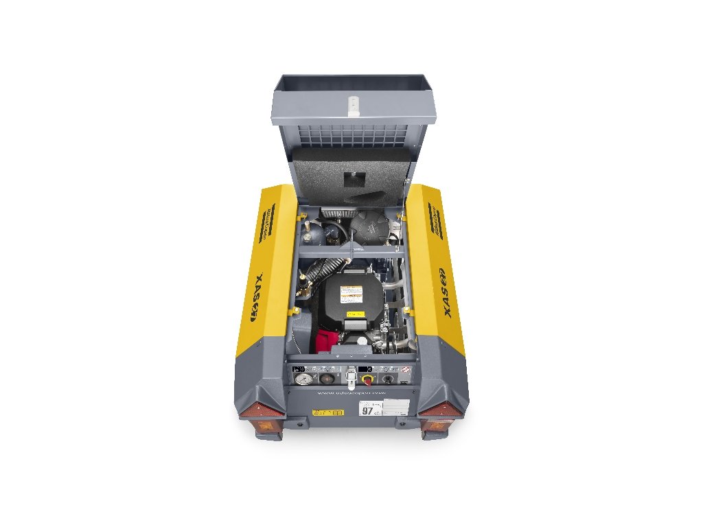 Při konstrukci nového kompresoru XAS 27 došlo ke spojení úspěšného polyethylénového konceptu HardHatTM a dílů vyrobených z pozinkované oceli, což zajišťuje maximální odolnost proti případnému poškození stroje. Součástí kapotáže je integrovaná palivová nádrž a elektrický ventilátor pro efektivní chlazení stroje. Dvouválcový benzínový motor Honda GX 630 pohání srdce celého kompresoru - nový kompresorový element C55, který zajišťuje dostatek stlačeného vzduchu pro pohon jednoho kusu libovolného pneumatického nářadí.
